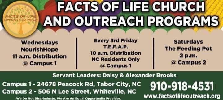 Facts of Life Church has been blessed enough to serve Our Lord since 1999. When we first opened our doors to Whiteville and Tabor City, NC, we were committed to helping our neighbors and enriching our communities by spreading His gospel. Through worship, Bible study, and community-centered events, we educate, inspire, and spread His love and kindness.